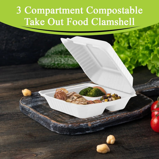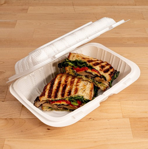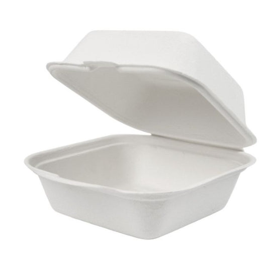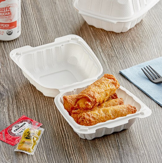 Watson Distributing 6" X 6" X 3" White Compostable Sugar Cane/Bagasse Hinged-Lid Container 500/Case