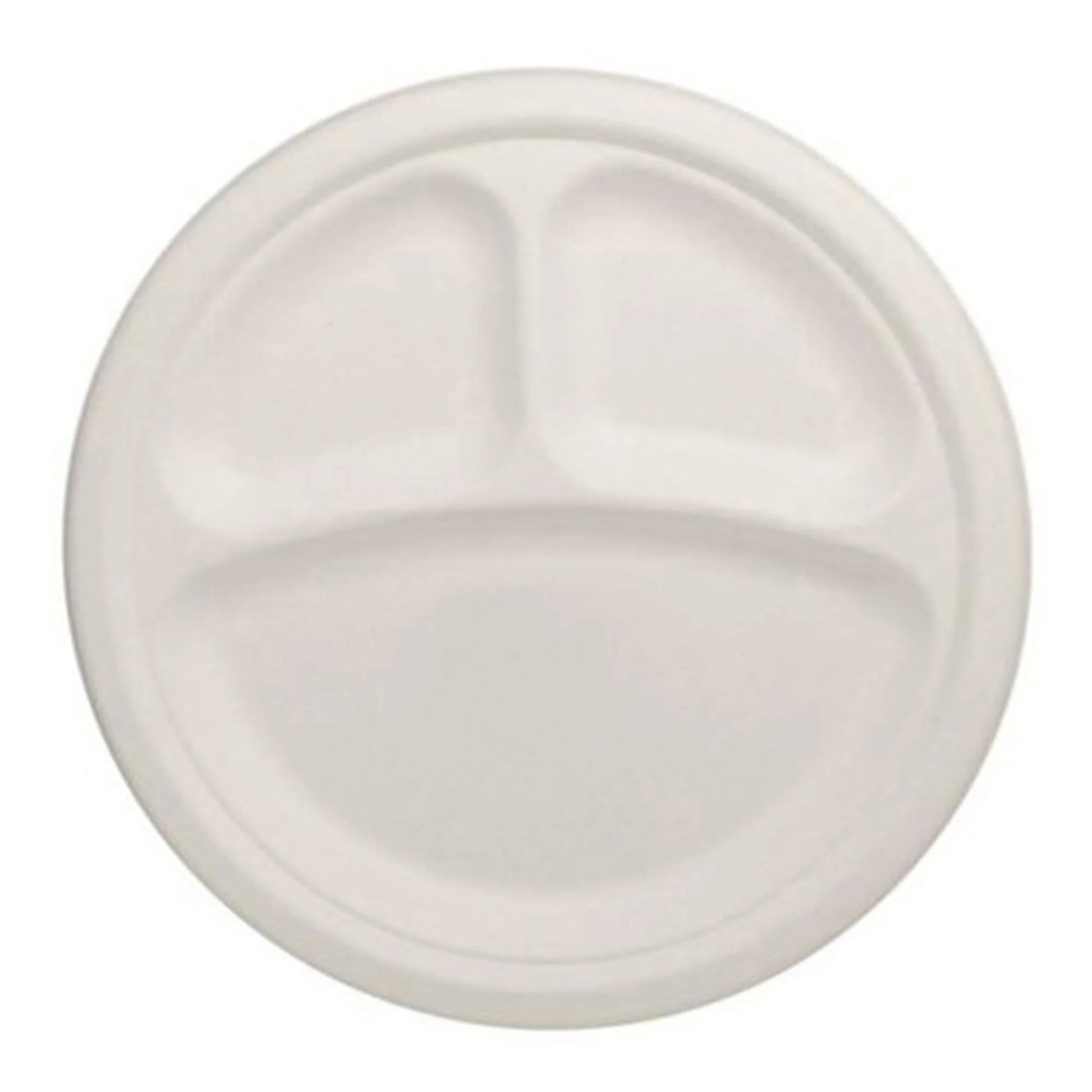 Watson Distributing 10" Disposable Plate Round Bagasse 3-Compartment 500/Case