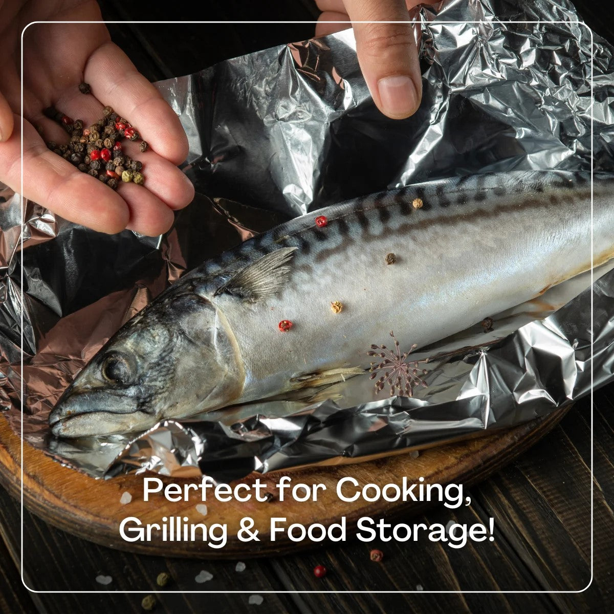 - Heat & Cold Retention – Premium standard aluminum foil engineered to withstand high heat and freezing temperatures, making it ideal for cooking, baking, grilling, and food storage.