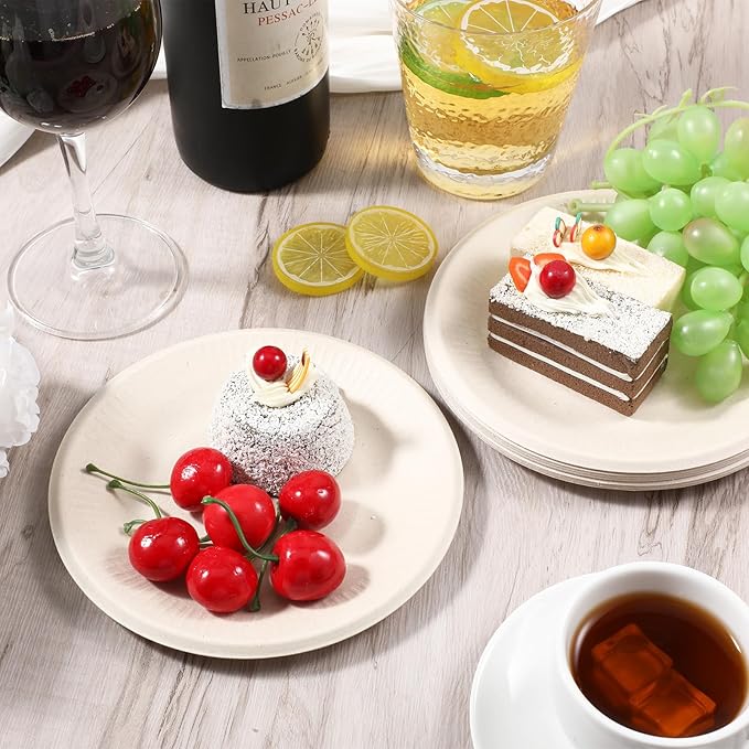 Ideal for desserts, small portions, or bread servings, this 6" round bagasse plate combines sustainability with practical use. Crafted from compostable, grease-resistant natural fiber, these plates offer a lightweight yet sturdy option for catering events, side dishes, and snack servings. Their natural white finish complements eco-conscious dining environments while helping reduce single-use plastic waste.